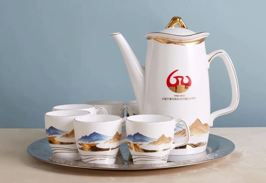 中央代表团向宁夏赠送的《携手奔小康》茶具