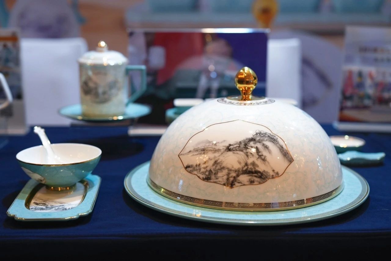 在峰会晚宴上,高淳陶瓷承制的盛世如意青花系列及丝路系列宴会餐瓷亮相现场,进一步展现了晚宴庄重的仪式感。