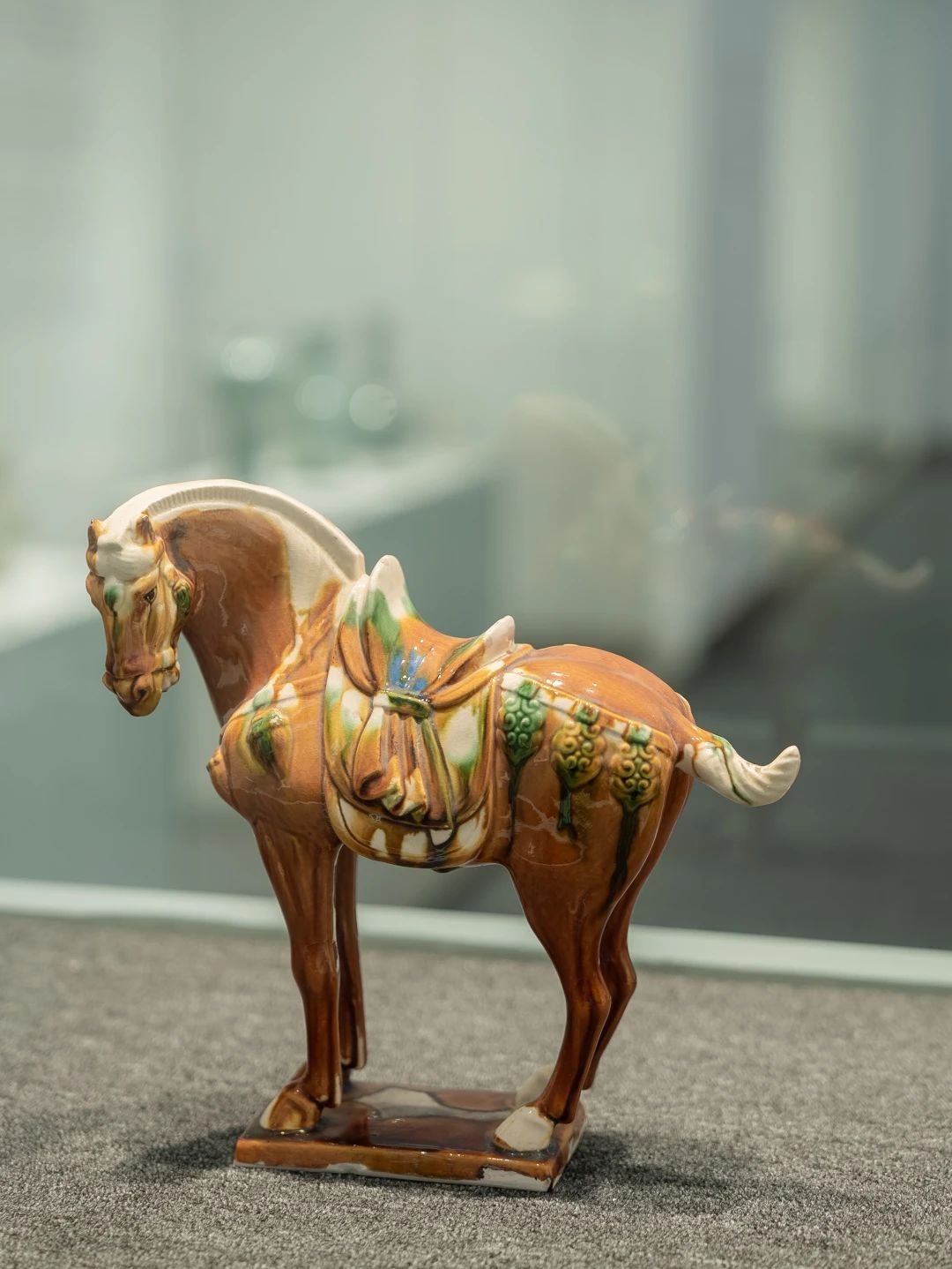 漫步展厅,各类陶瓷展品在灯光下流淌着历史质感:汝窑“雨过天青”,官窑“紫口铁足”,哥窑“金丝铁线”,钧窑万紫千红,定窑素净洁白,釉色里沉淀着千年窑火记忆。