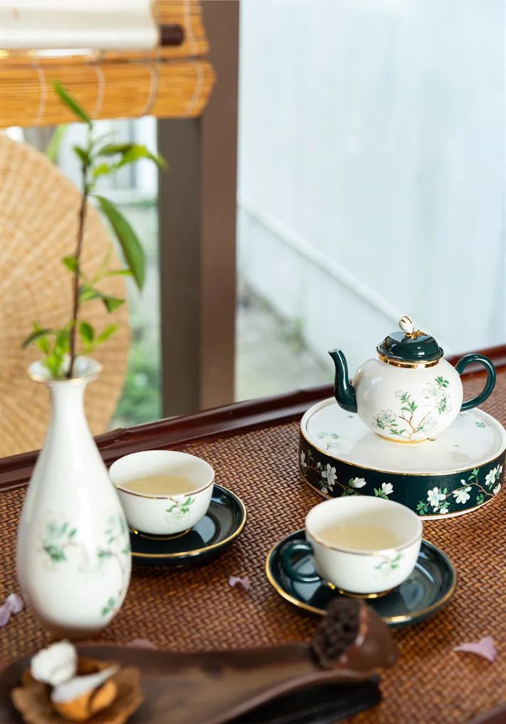 用一套淡雅明净的茶具