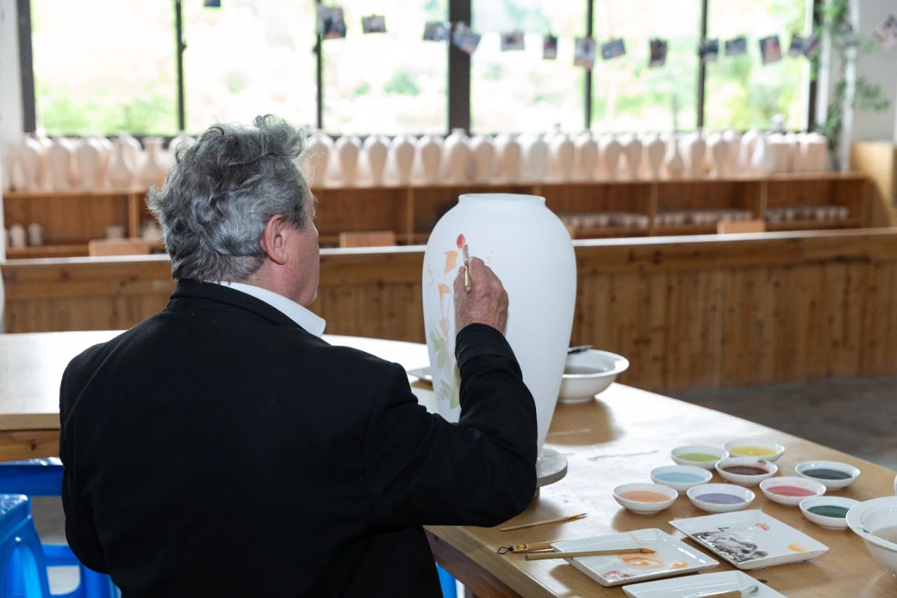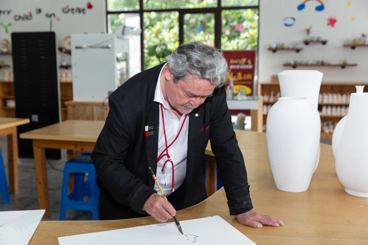 参访期间,皮埃尔·康努乐先生与高淳陶瓷多位陶瓷艺术家深入探讨,并即兴泼墨挥毫,创作了多件精美的陶艺作品。