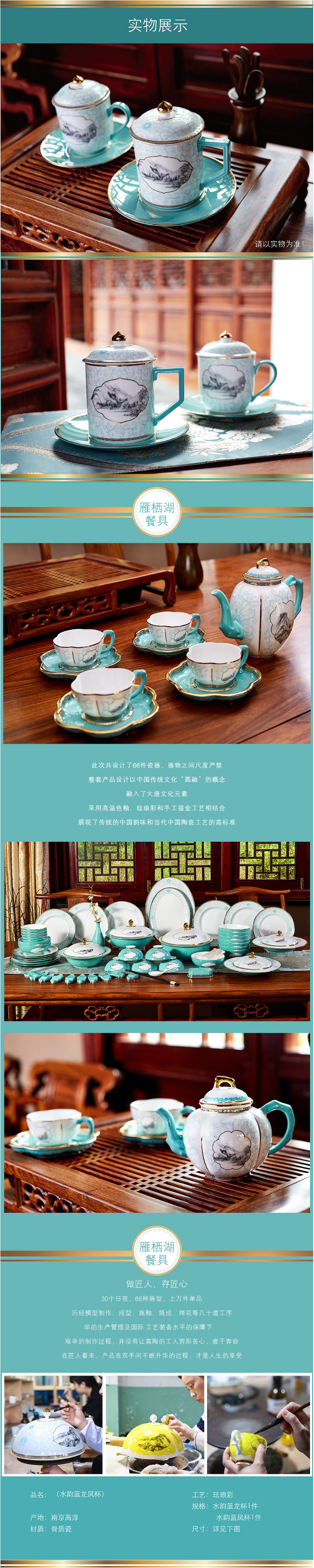 丝路茶杯珐琅彩骨瓷带盖办公杯